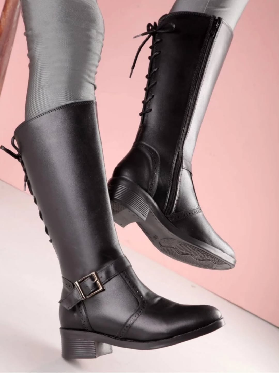 بوت بلند با رویه چرم صنعتی بسیار سبک و خوش پا قالب استاندارد. پاشنه سه سانت پیج اینستاگرام Kifkafsh_8@